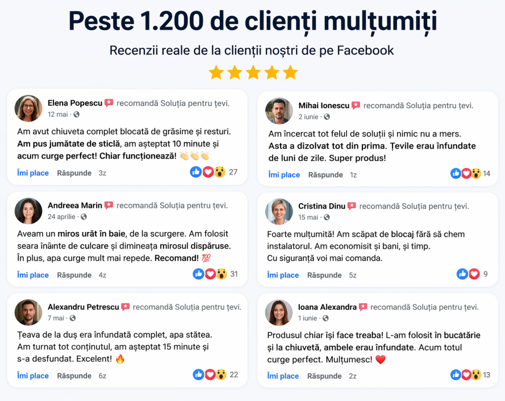 🌿 Sigur pentru toate suprafețele — nu deteriorează țevile și nu lasă reziduuri chimice